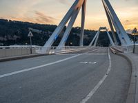 A coastal cityscape at dawn in Barcelona, Spain. Modern architecture and urban design are showcased in the city's skyline. The bridge over the ocean creates a dramatic focal point.