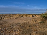 This is a breathtaking image of a coastal landscape in Portugal, Europe. The view captures the sky at dawn, with clouds illuminated by the first light of day. In the foreground, an animal stands on the dirt surface, surrounded by trees, rocks, and sand. The cliff in the background creates a stunning backdrop, with its rugged features and vertical slope. This picture beautifully showcases the natural beauty of Portugal's coastline, with its open spaces, rocky cliffs, and the endless expanse of the ocean.