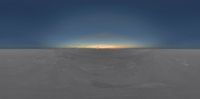 At dawn, the salt flat presents an endless landscape under a clear sky. Clouds hover over the open space, forming a natural skydome, in a tranquil desert environment.