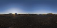 the sun sets over an arid landscape with mountain peaks in the distance and sunlight peeking down