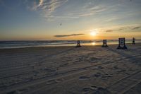 The sun peeks over the horizon, casting a warm glow on the sandy beaches of Daytona Beach, Florida. The clear sky and azure water create a serene atmosphere, perfect for recreational activities along the coast.