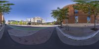 two fisheye images of a city street and the same perspective the photographer was taking