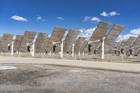 Desert Landscape with Metal Blocks, Blue Sky, and Contrails