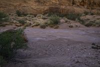 This stock photo showcases a stunning desert landscape in North Wash, Utah, USA. The photo captures the low, red rock mountains with grass and vegetation covering the ground. The road leads through the desert, providing a sense of adventure. The image showcases the natural beauty of the area, highlighting the unique mountain landforms, including bedrock outcrops and profile formations. The diverse vegetation, such as grass, shrubs, and groundcover, adds texture to the scene. The desert soil is visible, along with patches of gravel and cobblestone. The photo represents the Aeolian Landforms and fluvial landforms of streams that shaped the canyonlands in this brown and arid region. It is a perfect representation of the breathtaking landscapes found in Utah, USA.