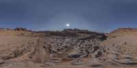 A scenic view of the Utah desert landscape with red rock formations and a sandy terrain. The bright sunlight shines down on an open hole in the sand, creating a captivating natural environment.