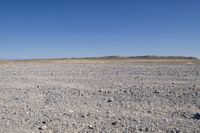 A stunning view of the desert landscape in Utah's San Rafael Swell. Red rock canyons and Aeolian landforms create a unique geology. The clear sky contrasts with the dry, open space. A dirt road leads through the breathtaking scenery.