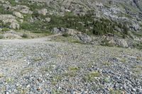 This image captures the stunning landscape of Hoosier Pass in Colorado, USA. The photo showcases a dirt road surrounded by mountains, open spaces, and lush vegetation. The path is rugged and covered in gravel, leading adventurers off-road to explore the natural beauty of the area. The geology of the region is evident with exposed bedrock and rocky outcrops scattered throughout. As the road ascends the mountain pass, it provides breathtaking views of a serene lake. This photo represents a picturesque day in Colorado, perfect for outdoor enthusiasts and nature lovers.