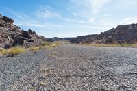 This image captures the rugged beauty of the San Rafael Swell in Utah. The photo showcases a straight road cutting through the red rock landscape. The asphalt and dirt surface leads into the canyonlands, surrounded by gravel and rocks. The clear sky above contrasts with the rugged terrain below. Nature and off-road enthusiasts will appreciate the untouched and wild nature of this area. The photo also captures contrails in the sky, adding movement and depth to the image. This is a perfect representation of the scenic beauty and adventure that awaits in Utah's San Rafael Swell.