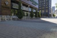 A bustling day in downtown Denver, Colorado. Modern architecture and mixed-use buildings line the city streets. Cobblestone roads, tree-lined sidewalks, and public spaces create a vibrant cityscape. Urban design and city life at its finest.