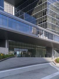 A modern high-rise building in the heart of downtown Los Angeles, California. The sleek facade and contemporary architecture make it a standout property in the city. Surrounded by asphalt roads, it is conveniently located near highways and public spaces.