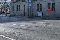 Empty street corner in downtown Toronto, showcasing modern architecture and urban design. Clear sky contrasts with the vibrant flag and signage on the buildings. A snapshot of city life in the bustling business district.
