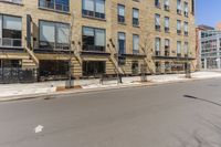 A modern condominium building in downtown Toronto, Ontario. The urban design features a combination of brick walls and glass windows. The road surface and curbs lead to the entry and driveway. City life in Canada captured in one image.