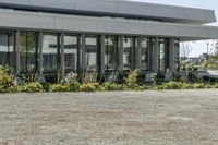 A modern office building in the heart of downtown Toronto. The sleek concrete facade and aluminium fixtures reflect the clear sky. The surrounding urban plaza is adorned with vegetation, providing a serene oasis in the bustling city.