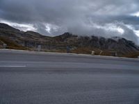 A dramatic landscape in Austria with a winding road cutting through the highland terrain. Majestic mountains provide a stunning backdrop. The road's asphalt surface contrasts with the natural beauty of the surrounding nature.