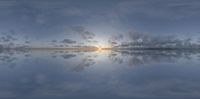Dawn breaks over an endless mountain landscape, casting dramatic cloud formations across the sky. An open space dominated by nature's serene beauty, highlighting the natural dome formed by sky and horizon.