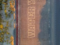 An aerial view of the Dutch coast at dawn. The straight road, made of concrete, leads to the open space of the coastal landscape. The high view shows a beautiful pattern of brown rectangles and blue ocean. A picturesque scene in Holland.