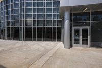 The modern architecture of the Martin Center in East Tennessee. The entrance features a composite material surface and large glass windows, reflecting the clear sky above. A fixture of the bustling urban business district.
