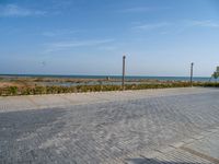 Egyptian coastal road with ocean views and open spaces. Clouds dot the clear day sky above. Parked cars line the paver road along the coastline, offering a serene view of the water.