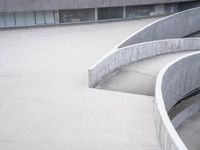 A modern architecture building in Tenerife, Spain. The city's urban design boasts elevated highways and industrial walls. The museum's concrete surfaces and handrails line the city streets, creating a composite of urban life in Europe.