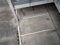 a car is parked outside of a parking lot and there are two side walkouts to pass by