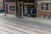 This image captures the vibrant city life of Toronto, Canada. The photo showcases the bustling streets filled with diverse infrastructure and buildings. The high walls and facades of restaurants and cafes are visible, along with the urban design elements such as brick walls and elevated road surfaces. The windows and doors of the buildings add character to the scene. The concrete streets are lined with vegetation and flower arrangements, giving a touch of nature to the urban environment. This image perfectly encapsulates the energy and charm of the city of Toronto.