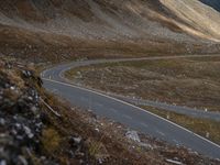 A breathtaking aerial view of an elevated road in the highlands of Austria. The road winds through a stunning landscape of mountains, grassy slopes, and rocky terrain. The clear sky provides a beautiful backdrop to this picturesque scene.