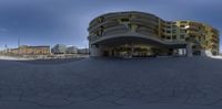 An elevated view of a modern European cityscape in Germany. The straight road lined with cobblestones and modern architecture leads to a residential area. The clear blue sky provides a stunning backdrop to the city's urban design.