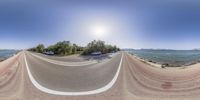 An elevated view of a coastal road in Mallorca, Balearic Islands. The road stretches high above the ocean, offering a straight down view. Graffiti walls line the road, adding an artistic touch to the landscape. A perfect day for kitesurfing in Europe.