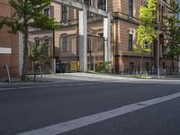 This captivating stock photo showcases an empty street in the vibrant city of Berlin, Germany. The road, beautifully paved with smooth asphalt, stretches out before you, devoid of any vehicles. The surrounding area is filled with breathtaking modern architecture, featuring impressive apartment buildings and homes. This mixed-use neighborhood is a desirable residential area, perfect for settling down. The clear sky adds a touch of charm to the classic and contemporary architectural designs. Explore the city life and urban charm of Berlin, where every entry feels like a gate to endless opportunities.