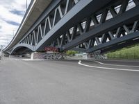 An empty highway in Hamburg, Germany, showcases the city's modern architecture and urban design. The bridge overhead and graffiti-covered pieces add a touch of urban art. A glimpse into city life in Europe.