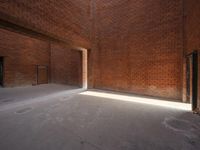 Empty Industrial Warehouse with Red Brick Walls and Bright Beam of Light