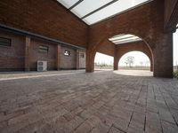 Empty Outdoor Area of Building in Brick-wall Courtyard