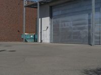 This stock photo features an empty parking lot located in Germany. The parking lot is near a garage door and a brick wall, with a paved road in between. The modern architecture of the surrounding buildings adds to the visual appeal. The open space and clear sky create a bright and inviting atmosphere. The photo showcases the facade, windows, and composite materials of the building, including wood and brickwork. The urban setting and spacious courtyard provide a sense of accessibility and public space. The road surface is made of asphalt, and there is a grey waste container near the curb. The photo captures a typical European Hinterhof, displaying a blend of modern and traditional architectural elements. The stock photo is taken during the day, highlighting the surface and material properties of the surroundings. This image is suitable for various uses in articles, blog posts, or ad campaigns related to architecture, urban development, or European city life.