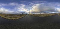 An Empty Road Under a Grey Sky in a Rural Landscape