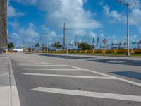 An empty road in Miami Beach, Florida, with clear blue skies. The road leads to a picturesque marina along the coastline. A perfect day for a coastal drive in Miami.