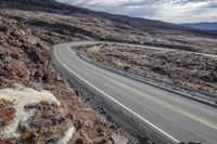 Empty Road and Rocky Outcropping in Arid Mountain