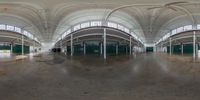 an empty room with arched ceiling, white walls and brown floors is shown on a 360 - angle view