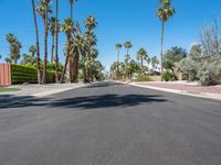 empty street with palm trees in the distance and no cars on the side of it