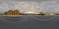 An Empty Street in a Suburban Neighborhood with Buildings and Clouds