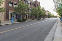 This is an image of a cityscape in Denver, Colorado, USA during dawn. The photo captures a long road made of asphalt cutting through the city. The low-rise buildings and houses are seen along the road, representing the residential areas of the city. On the sides, there are endless storefronts and office buildings, showcasing the urban and business districts. The image reflects the real estate and transport aspects of Denver. This photo embodies the dynamic and bustling nature of the city.