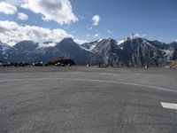 This image captures the stunning landscape of Austria in Europe. The clear sky allows for an open and expansive view of the mountains in the distance. In the foreground, people can be seen standing on top of an airport runway, overlooking the surrounding area. Parked vehicles provide a sense of scale and add to the overall composition of the photo. The wide open space and asphalt surface create a mesmerizing aerial view. This picture showcases the beauty of nature and the unique features of the Austrian landscape.