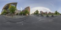 A straight road in Berlin's business district framed by modern architecture. The urban design showcases the city's unique profile. Straightforward and sleek, this road leads to the heart of Europe's business capital.