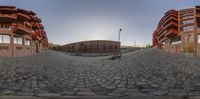 Early morning in Berlin, showcasing modern architecture and cobblestone streets. Residential area with brick walls and urban design elements. A blend of old and new in the city landscape of Europe.