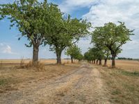 A rural landscape in Europe, with a straight gravel road cutting through agricultural fields under a cloudy day. The dirt road adds a natural charm to the scenery.