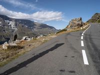 This is an image of a picturesque landscape in Austria, Europe. The photo shows a winding mountain road made of asphalt, surrounded by the beauty of nature. The road surface is smooth and coated with tar, providing a thoroughfare for travelers. The clear sky and fluffy clouds create a stunning backdrop against the backdrop of the highland slopes. This image captures the natural beauty of Austria, inviting viewers to explore the scenic roads and landscapes of this European country.