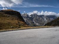 A picturesque landscape in Austria, featuring a winding road that cuts through the highland terrain. The grass surface and clear skies create a serene atmosphere. Majestic mountains and open spaces complete the scene.