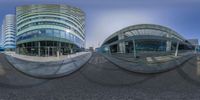 A modern high-rise building in the heart of a bustling European city. The sleek architecture and symmetrical design create a striking profile against the winter sky. The surrounding urban landscape is a mix of business districts and residential areas.