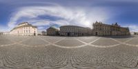 Upside down view of Bebelplatz square in Berlin, Germany. Classic architecture and cobblestone roads create a charming cityscape. The square is a popular tourist attraction with its stunning palace and baptistery. Enjoy the sunshine and vibrant city life in this European gem.