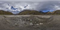 the camera is positioned in front of a big mountain range with low mountains in the background