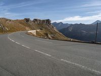 A motorcyclist traverses a winding mountain road in Austria. The road surface curves along the slope, surrounded by breathtaking landscapes. Clear skies and the picturesque European highlands complete the scene.